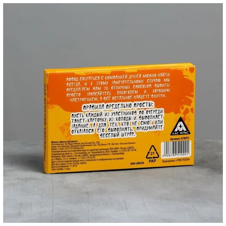 Купить игра для компании "фанты буханты" 20 карт от 100 руб. с доставкой до пункта выдачи в Перевозе. Интернет магазин ДекаМаркет. Оплата при получении.