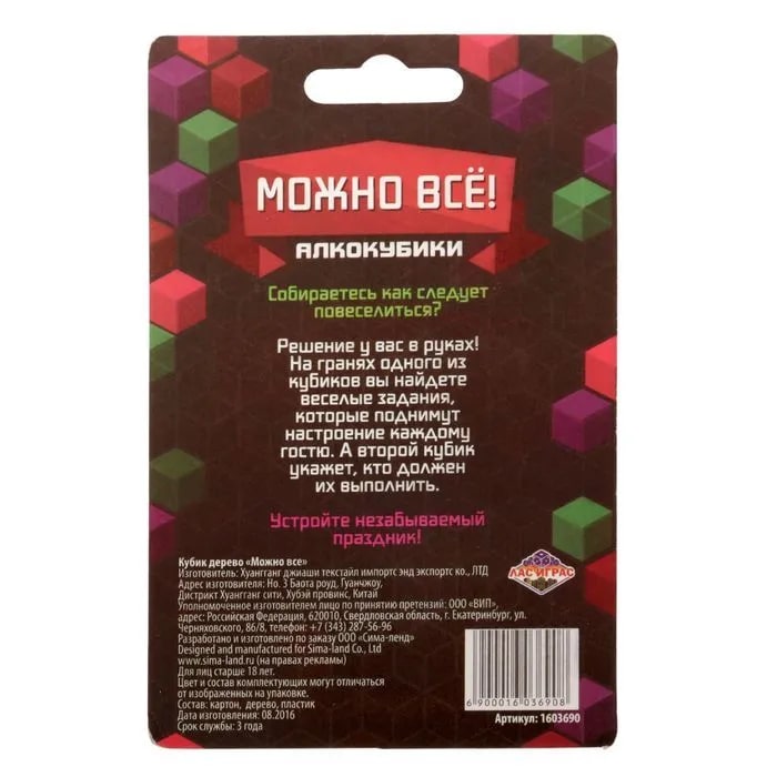 Купить кубик "можно все", алкокубики для принятия решений от 60 руб. с доставкой до пункта выдачи в Перевозе. Интернет магазин ДекаМаркет. Оплата при получении.